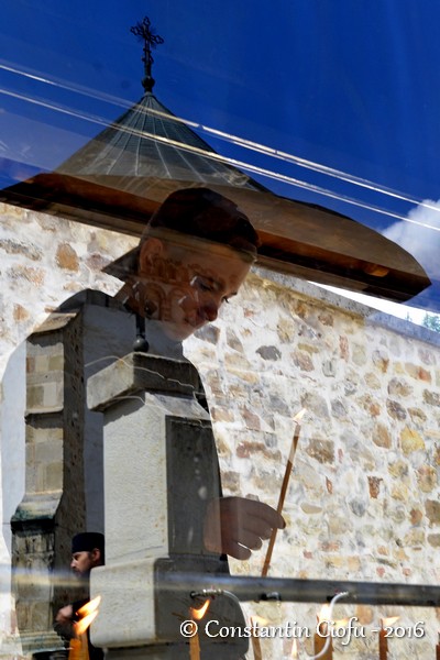 Mirela Grosu: „Am avut ocazia pentru prima dată sa fotografiez o slujbă de seara la Mănăstirea Varatic în seara zilei de 14 august 2016. Am fost foarte emoţionată când am ascultat corul maicilor cântand într-un mod atât de înălţător şi unic”.