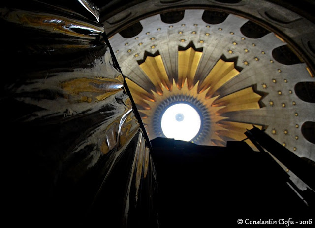Pentru o parte dintre pelerini, biserica Sfântului Mormânt era deja cunoscută. Unii chiar s-au grăbit să ajungă înainte în locaşul sfânt pentru a se închina la mormântul Domnului. După ce am intrat în biserică, am căutat să surprind în imagini zona pe unde vine Sfânta Lumină în fiecare an la Sfintele Paşti.