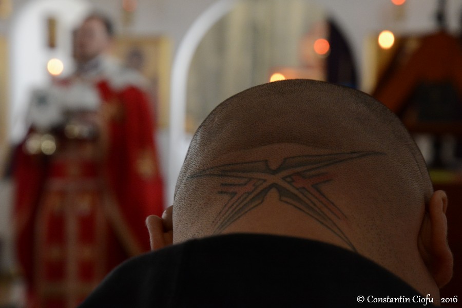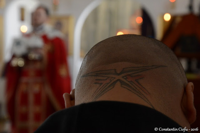 Personajul din imagine vine duminică de duminică în biserica ortodoxă din Montecatini Terme (Italia) şi aprinde candelele de la icoanele catapetesmei. Imediat se aşază în sparele locaşului de închinăciune, aşteptând să înceapă slujba. Am rămas uimit şi am judecat după aparenţe. Am aflat cum un locaş de închinăciune poate aduce pe calea mântuirii oameni care au simţit că trebuie să-şi schimbe viaţa. Tatuajul rămâne şi nu se mai poate înlătura, dar sufletul omului poate fi despătimit pentru a-I face loc Celui ce s-a răstignit pe Golgota.
