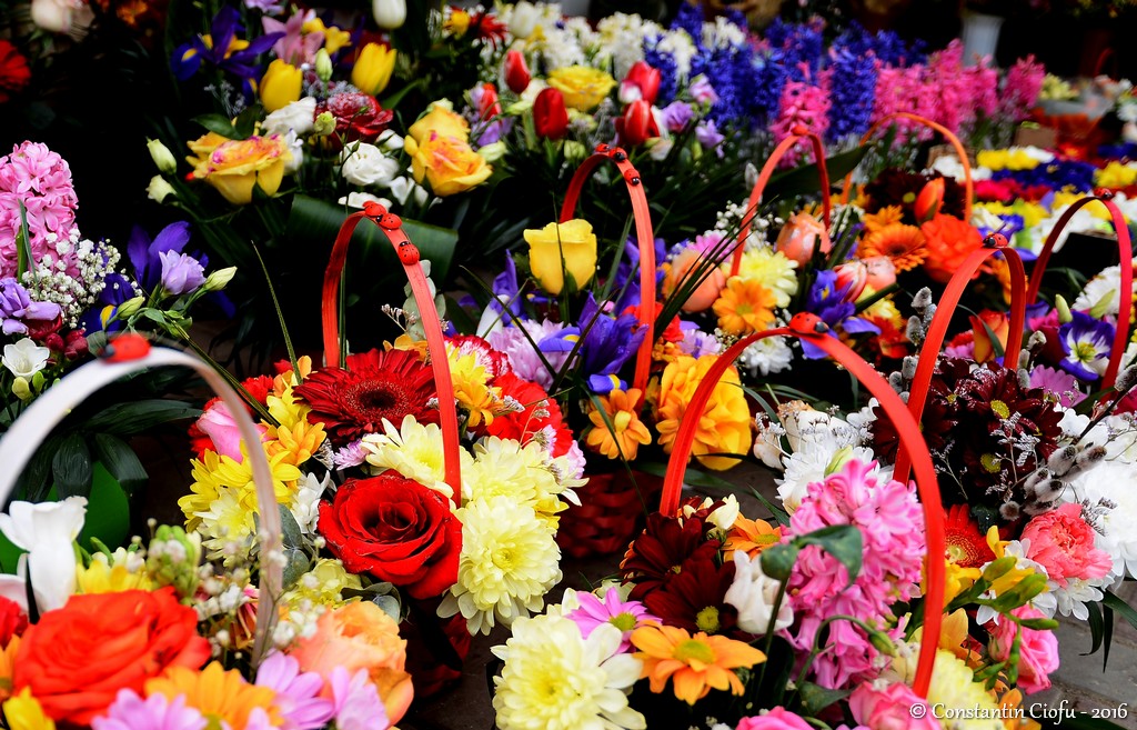 Oraşul Iaşi este invadat în aceste zile de frumoasele flori care de care mai colorate. Florarii şi-au folosit experienţa şi au realizat mici aranjamente în coşuleţe, perioada buchetului parcă apunând. Imaginile de mai jos au fost realizate în cartierul Alexandru cel Bun, după ce, cu zâmbetul obişnuit i-am cerut acordul vânzătoarei. 😀