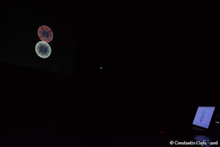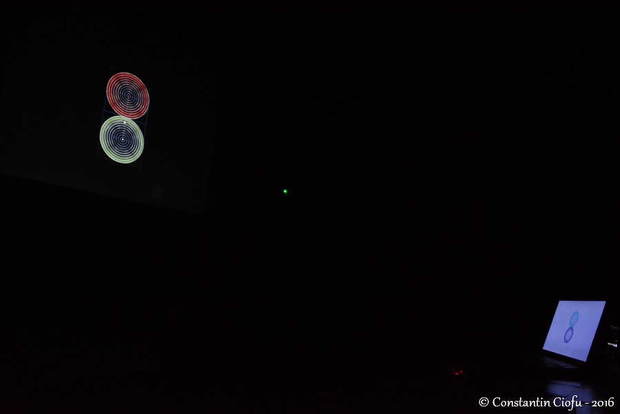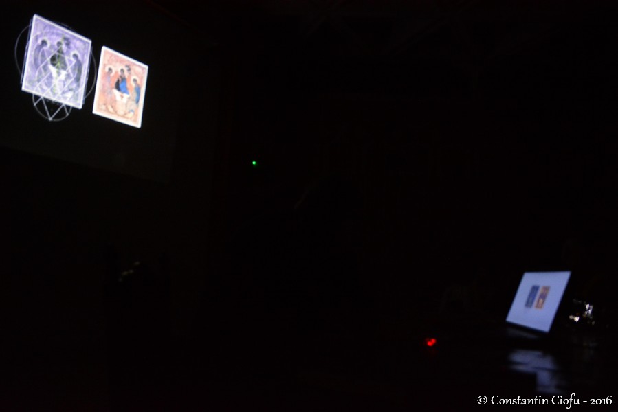 Dascălul de la Universitatea de Arte „George Enescu” din Iaşi a amintit că se ocupă de 17 ani de domeniul geometriei compoziţionale pentru pictură, în mod special. De asemenea, a mărturisit că la un moment dat i s-a cerut să realizeze în Italia o replică a icoanei Sfintei Treimi după modelul celei pictate de Andrei Rubliov. „După ce am realizat desenul, mi-am dat seama că există o structură geometrică circulară. Astfel am scos la iveală o serie de procedee. Am sesizat că există o preocupare din partea unor fotografi în ceea ce priveşte ordonarea spaţiului. În zona picturii, este tratată doar chestiunea traseelor lineare şi a celor circulare”, a adăugat lect. univ. dr. Cristian Ungureanu. În continuare, pasionaţii de fotografie au urmărit câteva clipuri despre compoziţia geometrică, un montaj arătând traseele circulare ale icoanei Sfintei Treimi a lui Andrei Rubliov. În ultima parte a întrevederii, cei prezenţi au adresat întrebări invitatului legate de tema expusă. Seara culturală s-a încheiat cu mulţumirile adresate Adrianei Tofănescu, profesorului Cristian Ungureanu şi tuturor celor prezenţi în sală. De asemenea, s-au îndreptat mulţumiri către reprezentanţii Casei de Cultură „Mihai Ursachi” pentru găzduirea evenimentului.