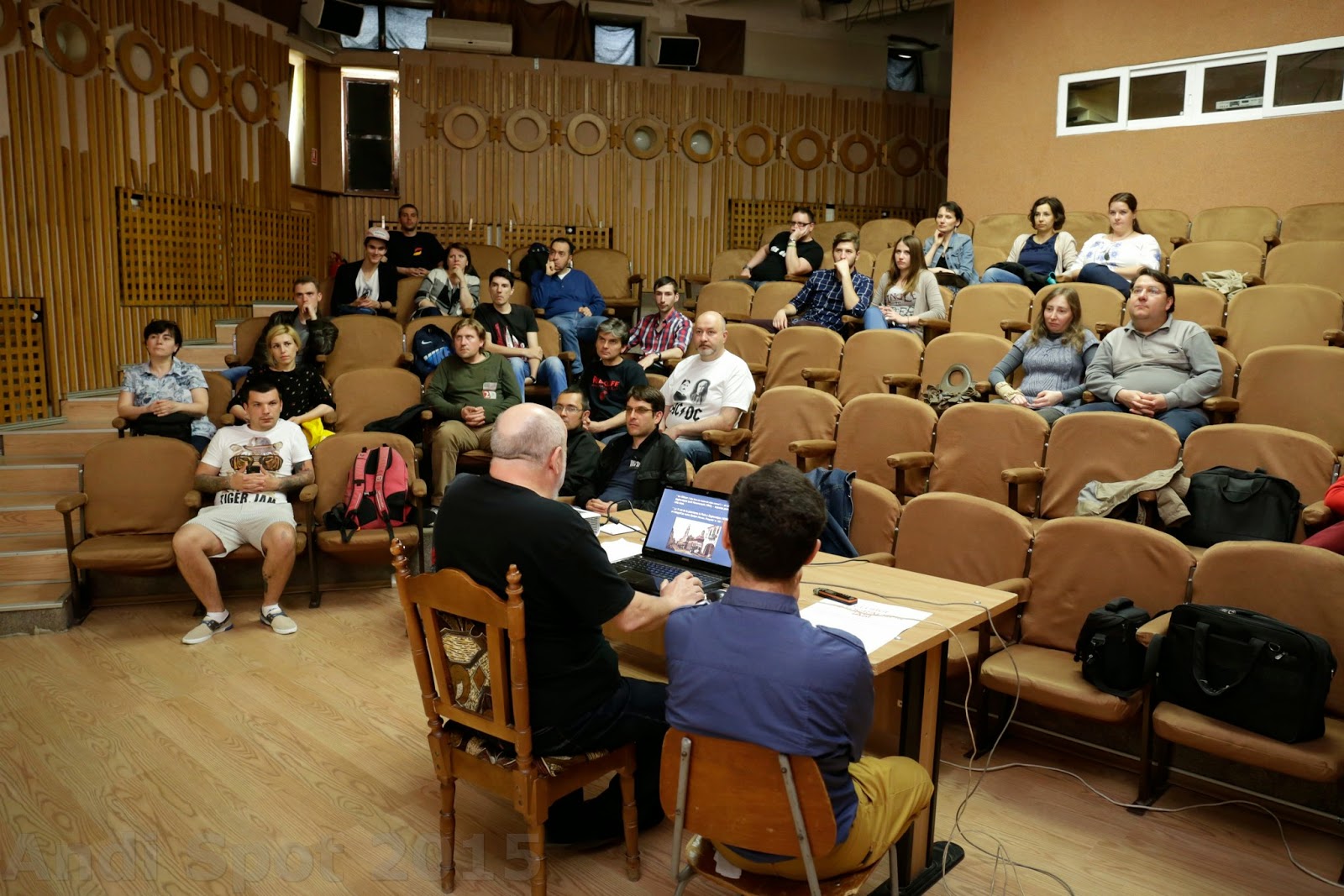 Din istoria fotografiei: “Fotografi şi ateliere fotografice în Iaşi. Începutul (perioada 1840 – 1914)”, prezentaţi de Constantin Ciobanu, Din fotografia de peisaj: “Galen Rowell şi fotografia de peisaj”, prezentat de Claudiu Bîrliba, şi Din fotografia contemporană: “Fan Ho şi fotografia de stradă”, prezentat de Adrian Purice. Evenimentul s-a bucurat de prezenţa unui număr însemnat de participanţi, membri ai Clubului Fotografilor Iaşi şi pasionaţi de fotografie din Iaşi. Cele trei teme au fost apreciate de publicul ieşean, astfel că au fost adresate întrebări şi s-au purtat discuţii. La final, cei trei membri ai Clubului Fotografilor Iaşi care au venit în faţa publicului cu subiectele deosebit de interesante şi bine documentare au fost răsplătiţi cu aplauze. Mulţumim membrilor Clubului Fotografilor Iaşi care au participat la eveniment şi celor care care au dedicat 100 de minute fotografiei (vechi, de stradă şi de peisaj). Mulţumim lui Ioan Apetrei pentru fotografii şi în mod special lui Florin Aioanei pentru realizarea afişului acestui eveniment. (Constantin Ciofu)