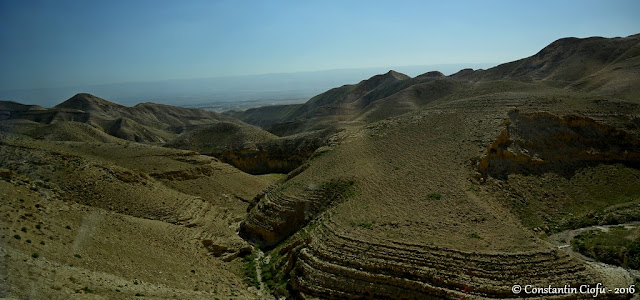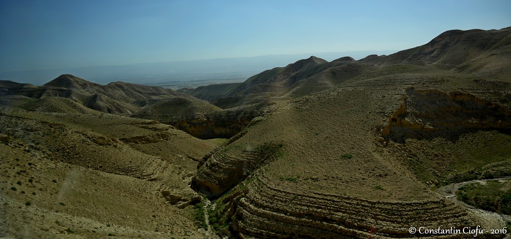 Pustiul Hozevei impresionează prin munţii stâncoşi. La mănăstirea Sfântului Ioan Iacob Românul am ajuns pe un drum şerpuit îngust, admirând perisajul deosebit, unde pe alocuri se puteau zări zone înverzite. Am fost agasaţi de oamenii locului cu „taxi magar” până la mănăstire, la doar 10 dolari.